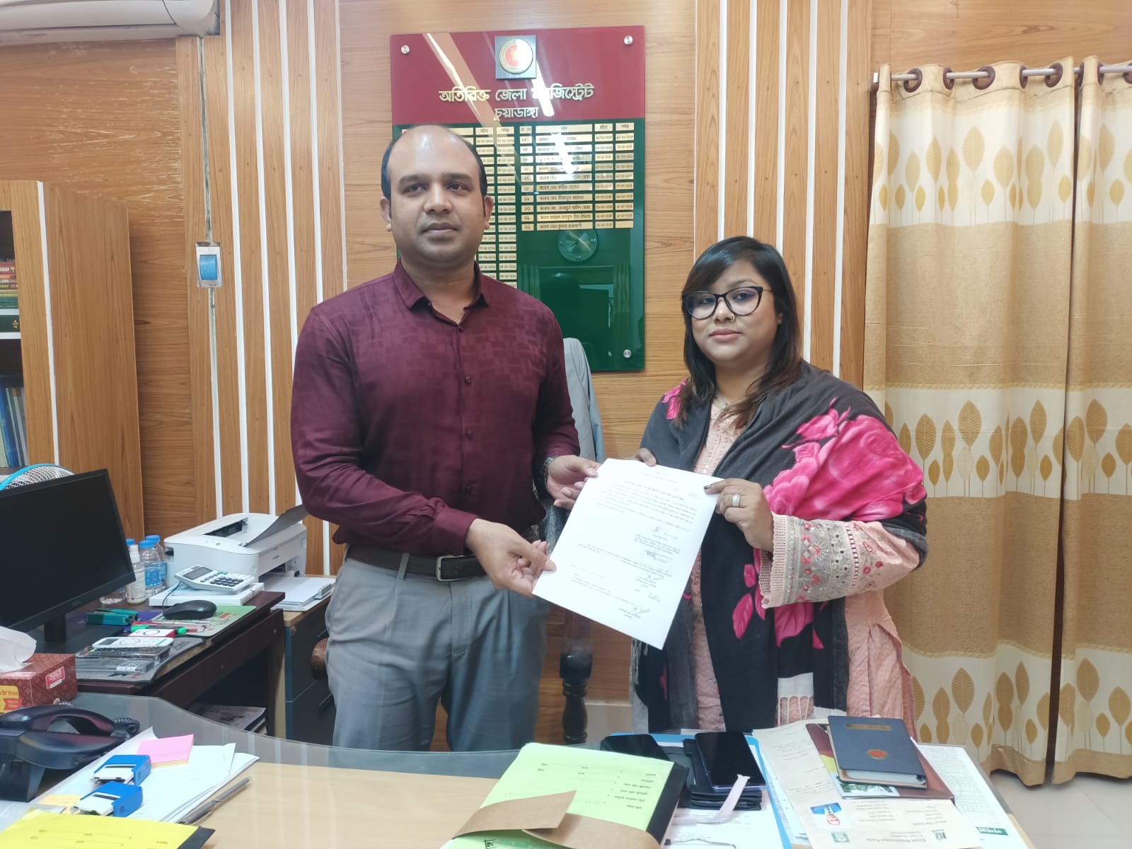 গতকাল বুধবার (২৯ জানুয়ারি) চুয়াডাঙ্গার অতিরিক্ত জেলা ম্যাজিস্ট্রেট নয়ন কুমার রাজবংশী স্বাক্ষরিত পত্রিকা প্রকাশকের ঘোষণাপত্রের কপি গ্রহণ করেন তিনি। চুয়াডাঙ্গা জেলা প্রশাসকের কার্যালয়ের স্মারক নং-০৫.৪৪.১৮০০.৩০২.৬৩.০১০.২৪-৯৯, তাং-২৯/০১/২০২৫ইং এর ঘোষণাপত্র মোতাবেক নতুন প্রকাশক হিসেবে পত্রিকার দায়িত্ব বুঝে নেন জান্নাতুল আওলিয়া নিশি।