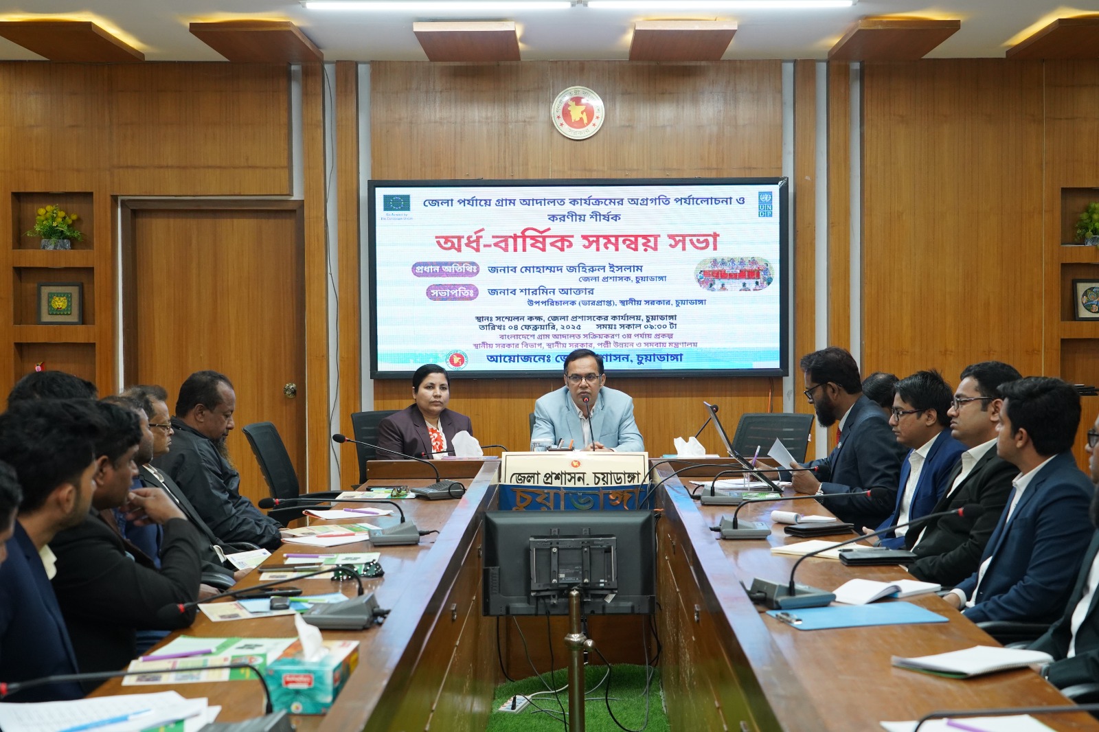 চুয়াডাঙ্গায় গ্রাম আদালত কার্যক্রমের অগ্রগতি পর্যালোচনা ও করণীয় শীর্ষক ষান্মাসিক সমন্বয় সভা অনুষ্ঠিত হয়েছে। গতকাল মঙ্গলবার সকাল সাড়ে ৯টায় জেলা প্রশাসকের কার্যালয়ের সম্মেলন কক্ষে এ সভার উদ্বোধন করেন জেলা প্রশাসক মোহাম্মদ জহিরুল ইসলাম। সভায় সভাপতিত্ব করেন চুয়াডাঙ্গার স্থানীয় সরকারের ভারপ্রাপ্ত উপ-পরিচালক শারমিন আক্তার। বাংলাদেশ গ্রাম আদালত সক্রিয়করণ (৩য় পর্যায়) প্রকল্পের আওতায় এই সভার আয়োজন করে জেলা প্রশাসন।