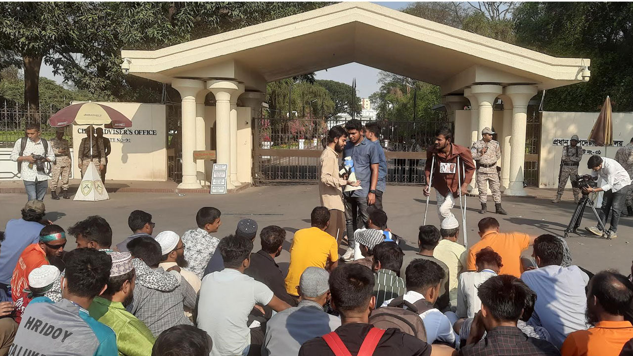 অন্যদিকে, প্রায় সাড়ে তিন ঘণ্টারও বেশি সময় ধরে প্রধান উপদেষ্টার কার্যালয়ের সামনে অবস্থান নিয়ে বনে থাকতে দেখা গেছে আন্দোলনকারীদের।