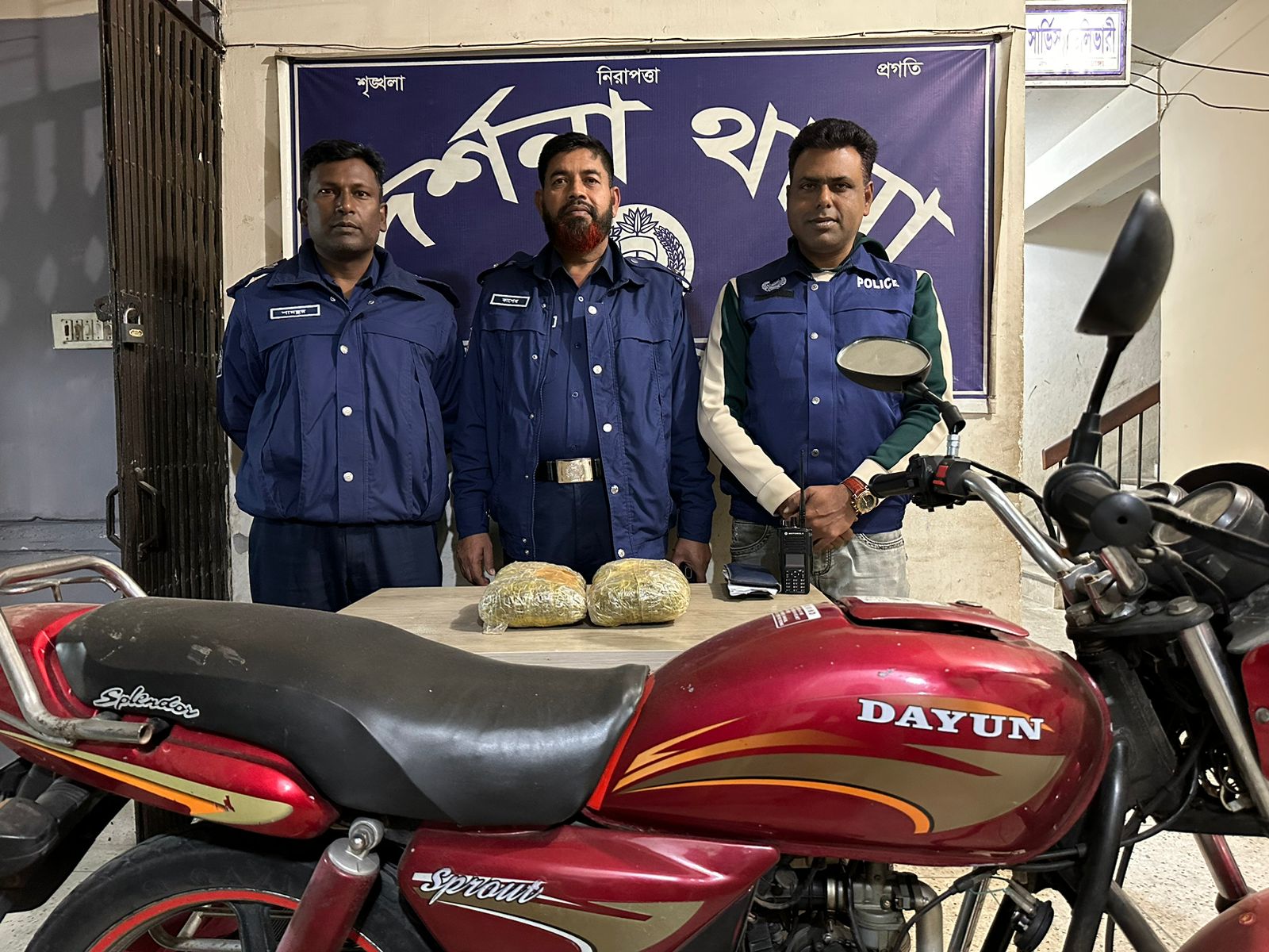 চুয়াডাঙ্গার দর্শনা থেকে ২ কেজি গাঁজাসহ একটি মোটরসাইকেল জব্দ করেছে পুলিশ। তবে এসময় কাউকে গ্রেফতার করা সম্ভব হয়নি। গতকাল বুধবার দুপুর ২টার দিকে এ অভিযান চালানো হয়। পুলিশ জানায়, গোপন সংবাদের প্রেক্ষিতে দর্শনা থানার এসআই মাসুদুর রহমান সঙ্গীয় অফিসার ও ফোর্সসহ মাদক বিরোধী অভিযান পরিচালনা করেন। এসময় গোপন সংবাদের ভিত্তিতে দর্শনা থানার রাঙ্গিয়ারপোতা নতুনপাড়াস্থ রাঙ্গিয়ারপোতা-শিংনগরগামী সড়কের ওপর থেকে একটি মোটরসাইকেলসহ ২ কেজি গাঁজা জব্দ করা হয়।