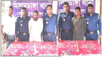 চুয়াডাঙ্গা-মেহেরপুর সড়কের কুলপালা এলাকায় ডাকাতির ঘটনায় দুইজনকে গ্রেফতার করেছে পুলিশ। গত শুক্রবার দিনগত রাত সাড়ে ৩টার দিকে আলমডাঙ্গার কুলপালা ও গোপীনগর গ্রাম থেকে তাদেরকে গ্রেফতার করা হয়। এসময় তাদের কাছ থেকে ডাকাতির কাজে ব্যবহৃত একটি লোহার রড ও একটি হাসুয়া উদ্ধার করা হয়। গ্রেফতারকৃতরা হলো- আলমডাঙ্গার কুলপালা গ্রামের সিরাজুল ইসলামের ছেলে জাহিদ আলী (৩৫) ও গোপীনগর গ্রামের বজলুর রহমানের ছেলে মিলন হোসেন (৩৪)।