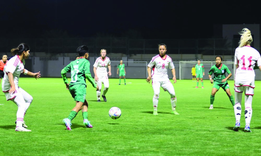 আমিরাতের ফরোয়ার্ডরা দুই উইং ব্যবহার করে আক্রমণ শানিয়েছে। হাওয়ায় উড়ে আসা বল ফেরাতে হিমশিম খেয়েছে বাংলাদেশের ডিফেন্ডারা। দ্বিতীয়ার্ধের শুরুতেই ব্যবধান বাড়িয়ে নেয় আমিরাত। এরপর ৮১ মিনিটে পেনাল্টি আদায় করে বাংলাদেশ।