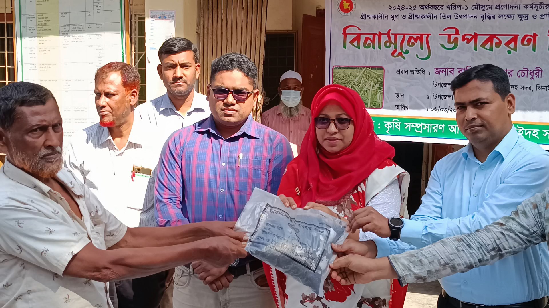 ঝিনাইদহে সাড়ে ১৩’শ কৃষকের মাঝে বিনামূল্যে সার ও বীজ বিতরণ করা হয়েছে। গতকাল বৃহস্পতিবার সকালে সদর উপজেলা পরিষদ চত্বরে কৃষি বিভাগের পক্ষ থেকে এ উপকরণ বিতরণ করা হয়। এ সময় সদর উপজেলা নির্বাহী কর্মকর্তা রাজিয়া আক্তার চৌধুরী, উপজেলা কৃষি কর্মকর্তা নুর-এ নবী, অতিরিক্ত কৃষি অফিসার জুনাইদ হাবীবসহ অন্যান্যরা উপস্থিত ছিলেন। কৃষি বিভাগ জানায়, গ্রীষ্মকালীন মুগ ও তিলের আবাদ ও উৎপাদন বৃদ্ধির লক্ষ্যে সরকারের প্রণোদনা কর্মসূচীর আওতায় সদর উপজেলার বিভিন্ন এলাকার সাড়ে ১৩’শ কৃষককে এ উপকরণ দেওয়া হয়। ৮’শ কৃষকের প্রত্যেককে ৫ কেজি উন্নতজাতের মুগ বীজ ও ১৫ কেজি রাসায়নিক সার এবং সাড়ে ৫’শ কৃষকের প্রত্যেকে ১ কেজি গ্রীষ্মকালীন তিল ও ১৫ কেজি রাসায়নিক সার দেওয়া হয়।