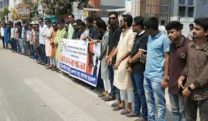 মানববন্ধনে ছাত্রদলের সভাপতি ফজলুর রহমান খোকনের