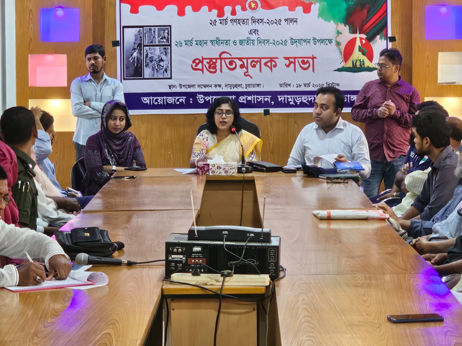 দামুড়হুদা উপজেলা প্রশাসনের আয়োজনে ২৫ মার্চ গণহত্যা দিবস ও ২৬ মার্চ মহান স্বাধীনতা দিবস পালনের লক্ষ্যে প্রস্তুতিমূলক সভা অনুষ্ঠিত হয়েছে। গতকাল মঙ্গলবার বেলা ১১ টায় উপজেলা পরিষদের সভাকক্ষে এ সভা অনুষ্ঠিত হয়। উপজেলার নির্বাহী অফিসার তিথি মিত্র’র সভাপতিত্বে অনুষ্ঠিত সভায় দিব সসমূহ যথাযথ মর্যাদায় পালনের লক্ষ্যে সর্বসম্মতিক্রমে বিশেষ সিদ্ধান্ত গৃহীত করা হয়।