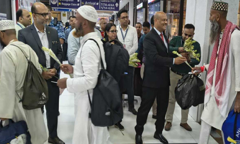 পবিত্র হজ পালন শেষে হাজিরা ফিরতে শুরু করেছেন। প্রথম ফ্লাইটে দেশে ফিরেছেন ৩৬৯ জন হাজি। ফুল দিয়ে তাদের বরণ করেন বেসামরিক বিমান চলাচল কর্তৃপক্ষের (বেবিচক) চেয়ারম্যান এয়ার ভাইস মার্শাল মো. মঞ্জুর কবীর ভূঁইয়া। আজ মঙ্গলবার (১০ জুন) সকাল ১০টা ৫৪ মিনিটে সৌদি এয়ারলাইন্সের ফ্লাইট ‘এসভি-৩৮০৩’ রাজধানীর হযরত শাহজালাল আন্তর্জাতিক বিমানবন্দরে অবতরণ করে। এ সময় বিমানবন্দরের বোর্ডিং ব্রিজে ফুল দিয়ে হাজিদের স্বাগত জানান বেবিচক চেয়ারম্যান। হজ উপলক্ষে বাংলাদেশ থেকে এ বছর মোট ৮৫ হাজার ৩০২ জন ধর্মপ্রাণ মুসল্লি সৌদি আরবে গেছেন। এর মধ্যে প্রথম হজ ফ্লাইটটি ঢাকা থেকে সৌদি আরবের উদ্দেশে ছেড়ে যায় ২৯ এপ্রিল। এরপর প্রায় এক মাস ধরে ধারাবাহিকভাবে হজযাত্রীদের বহন করে ফ্লাইটগুলো পরিচালিত হয়। সবশেষ হজ ফ্লাইটটি যায় গত ১ জুন। পুরো এই সময়ে মোট ২২০টি হজ ফ্লাইট পরিচালিত হয়। তাছাড়া আরো ৭টি ফিরতি ফ্লাইটে আড়াই হাজারের বেশি হাজি দেশে ফিরবেন। ফিরতি হজ ফ্লাইট চলবে আগামী ১১ জুলাই পর্যন্ত।