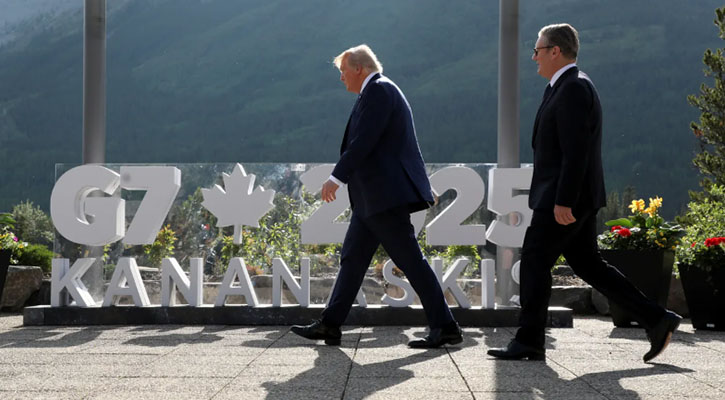 ইসরায়েল-ইরান সংঘাতে আরও সক্রিয় হস্তক্ষেপের ইঙ্গিত দিয়ে জি-৭ সম্মেলন থেকে আগেভাগেই কানাডা ত্যাগ করেছেন মার্কিন প্রেসিডেন্ট ডোনাল্ড ট্রাম্প। এর আগে সোমবার রাতে নিজের মালিকানাধীন সামাজিক যোগাযোগ মাধ্যম ট্রুথ সোশ্যালে একটি পোস্টে ইসরায়েলের প্রতি সমর্থন জানিয়ে ইরানের রাজধানীর প্রায় এক কোটি মানুষকে হুঁশিয়ারি দেন। তিনি লেখেন, সবাই যেন তৎক্ষণাৎ তেহরান ছেড়ে সরে যায়! জি-৭ নেতাদের সঙ্গে মনোরম পাহাড়ঘেরা কানানাস্কিস রিসোর্টে তোলা এক দলগত ছবিতে ট্রাম্প বলেন, আমাকে যত তাড়াতাড়ি সম্ভব ফিরে যেতে হবে। আমি চাইছিলাম আগামীকাল পর্যন্ত থাকতে, কিন্তু তারা নিশ্চয়ই বুঝতে পারছে—এটা খুব বড় ব্যাপার।