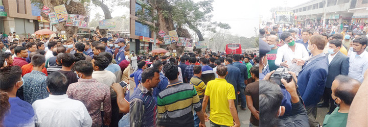 মানববন্ধনে ছাত্রদলের সভাপতি ফজলুর রহমান খোকনের